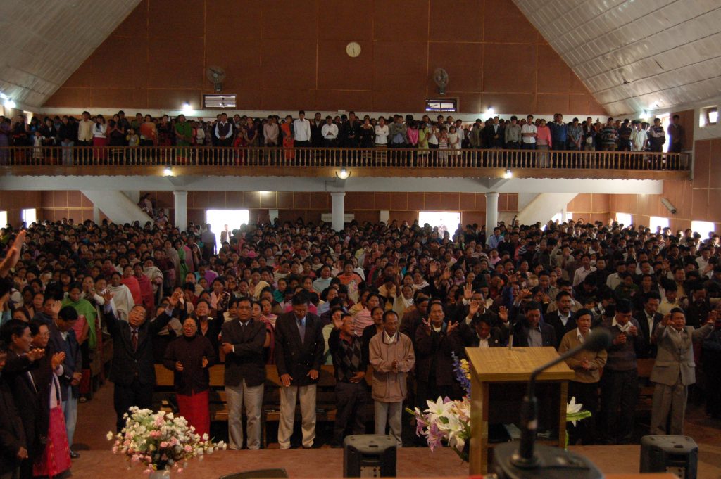 Strength in Prayer: Faith was an integral part to the process throughout the journey towards Naga Reconciliation. Many reconciliation ‘encounters’ were held in church sanctuaries. During the most difficult times, in addition to being a safe haven of security, they also provided the space for personal transformation. This file photo shows the FNR and the Joint Working Group of the NPGs fellowshipping together with the people of Mon Town at the Konyak Baptist Church, Mon (February 2010).