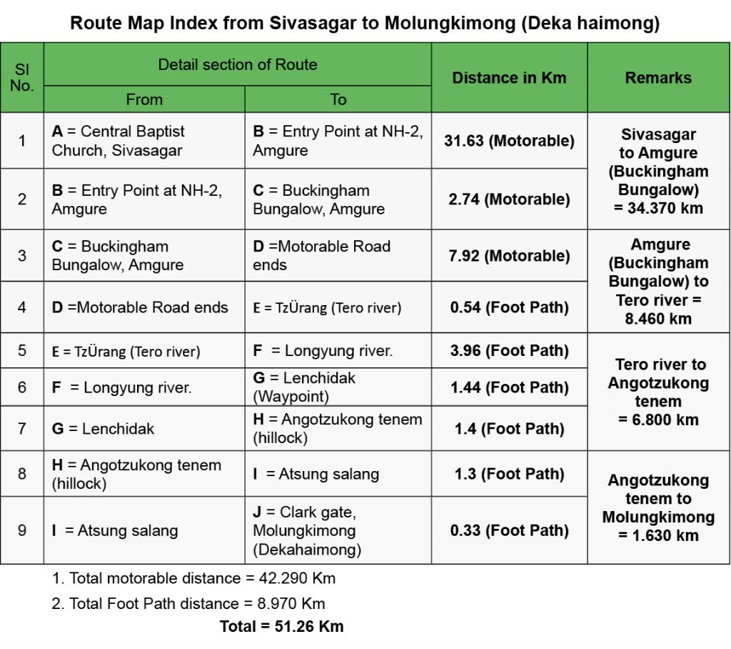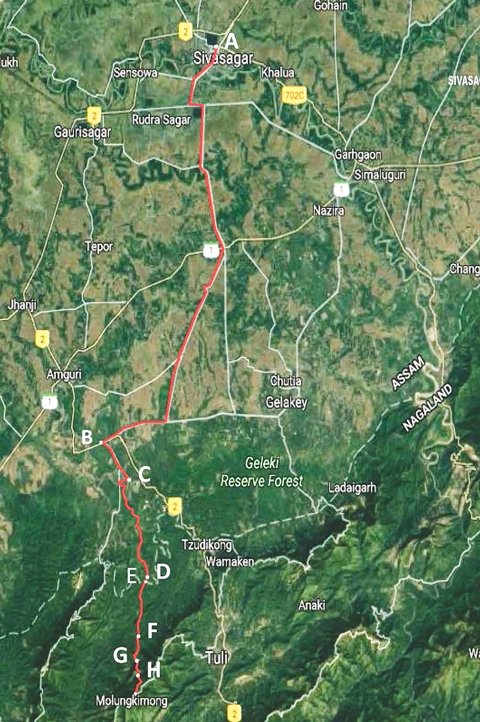 Route map index from Sivasagar to Molungkimong (Deka Haimong)