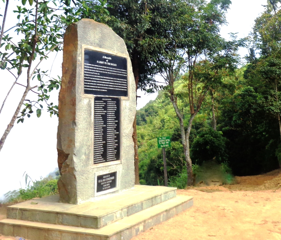 Rev. Dr. E.W. Clark Monument: On this very site Clark and his servant Kenowar lived with Mr. Bendangnüken Longchar from 2nd March to 24th October 1876