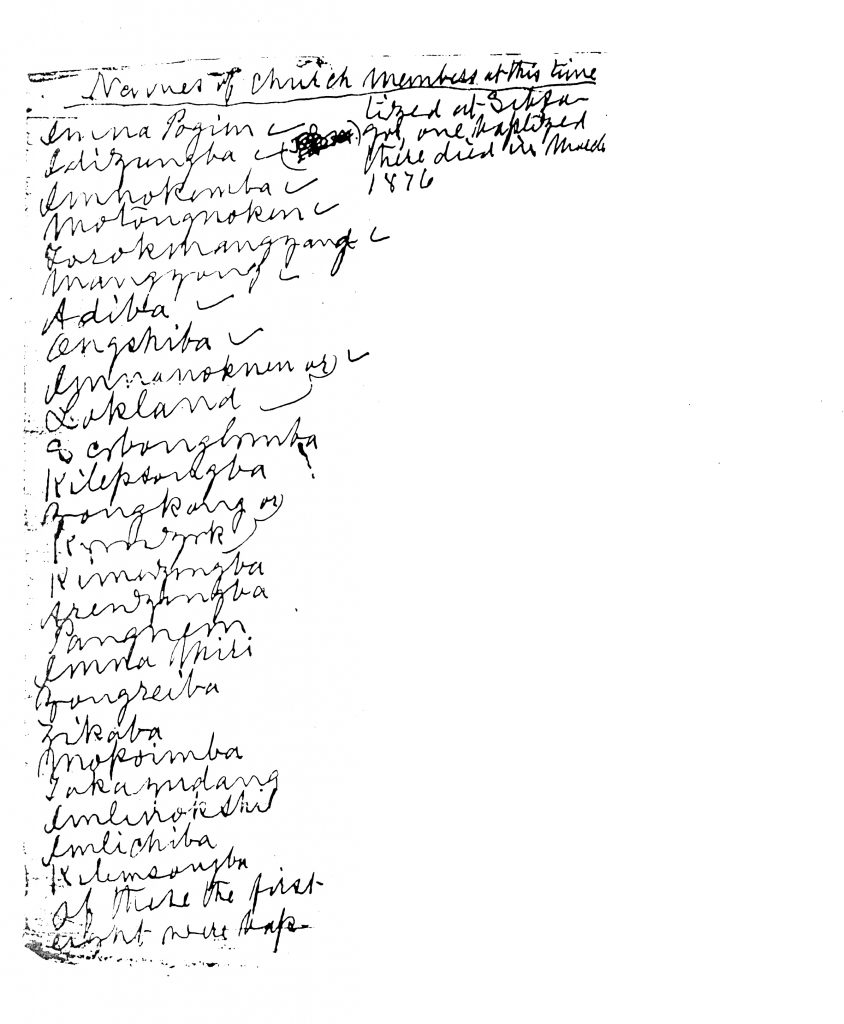 The names of the first 24 Baptized men from Molungkimong written in Clark’s handwriting