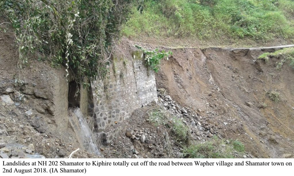 Under Kohima district, landslide & subsidence at various location at Kigwema-Mima-Chakhabama road, NEC road: Viswema-Kidima-Zuketsa & several other places.