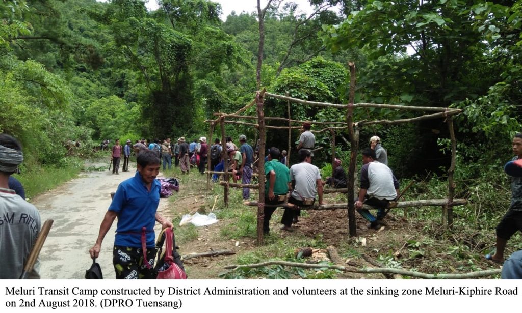 Meanwhile the officers from the district administration of both Kiphire and Meluri are camped at the spot where a large section of the road has sunk 8 kms from Meluri side and with the help of volunteers have constructed temporary transit camps on either for facilitating manual carriage of essential commodities across the affected area from where trucks can be utilised to transport the goods to Kiphire.