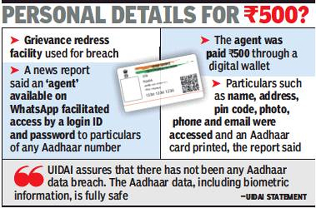 The Unique Identification Authority of India (UIDAI) has registered an FIR for unauthorised access to Aadhaar data, such as names and other demographic details, due to the misuse of the grievance redressal facility at the office of the Surat district administration in Gujarat. The breach came to light following a report in The Tribune that claimed an “agent” available on WhatsApp facilitated access by a login ID and password to the particulars of any Aadhaar number.