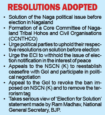 Supporting the initiative, K. Therie, President NPCC stated, “There is a unity in this slogan ‘solution before election’.” While agreeing that the policy adopted by the Centre for inclusive solution is an opening for every group of the Naga national movement, Therie pointed out that the only question that remains is whether BJP can also agree to the aspirations of the Nagas. Expressing apprehension that unless there is a sincere will on the part of the BJP, Therie said “the issue will remain.”