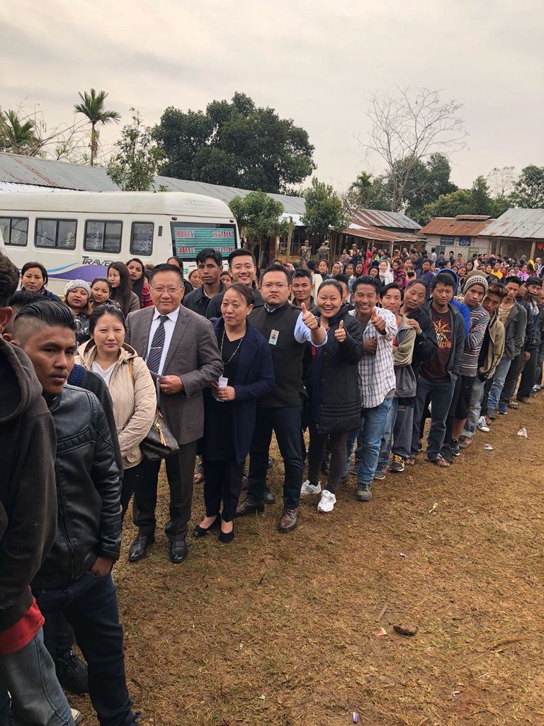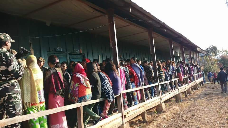 Long line of voters in one of the polling station in Kohima