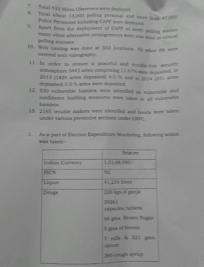About 13000 polling personnel and more than 47000 police personnel were deployed across the state on the day of election. Of the 533 locations for webcasting, about 500 were seen clearly and all the others were covered with videography. A unique arrangement was that in Wokha district one polling station was set up entirely for people with disabilities, he added.