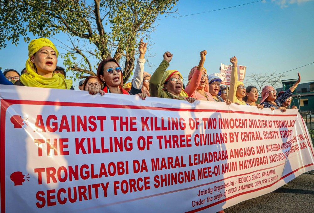 The protest is against the killing of two minor children and the injury to their mother, allegedly by suspected Kuki militants, in Bishnupur district on April 7.
