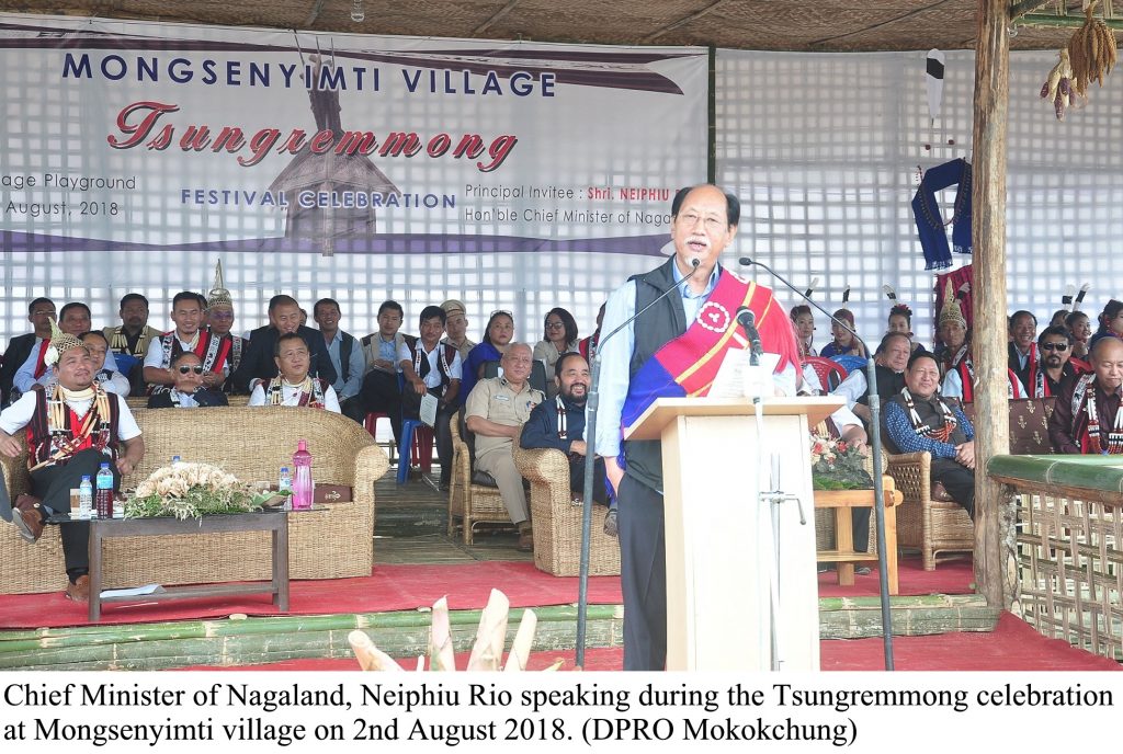 Chief Minister Neiphiu Rio touched on the themes of political solution, the foothill road project and the Dr T. Ao birth centenary during the Tsungremmong Hornbill festival celebration held at Imkongmeren Sports Complex, Mokokchung town.