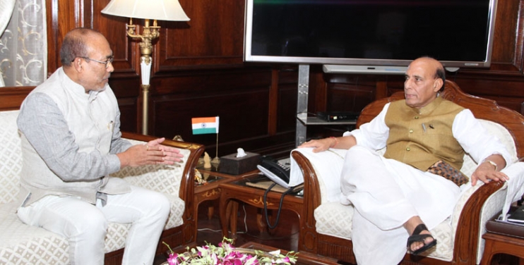 The Chief Minister of Manipur, N. Biren Singh calling on the Union Home Minister, Rajnath Singh, in New Delhi.
