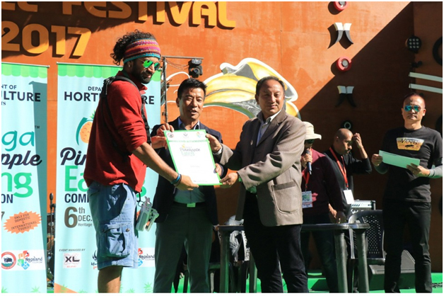 The first ever pineapple eating competition was held on the 6th day of Hornbill Festival, at Kisama Heritage Village, Kohima today, the 6th Dec, 2017. The event was organised by Department of Horticulture in collaboration with XL Management and supported by Department of Tourism.