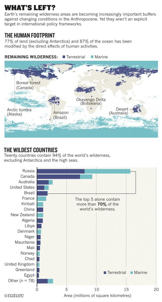 In 2016, we led an international team of scientists to map the world’s remaining terrestrial wilderness3,4. This year, we produced a similar map for intact ocean ecosystems2 (see ‘Wild Earth’). The results of these efforts show that time is running out to safeguard the health of the planet — and human well-being.